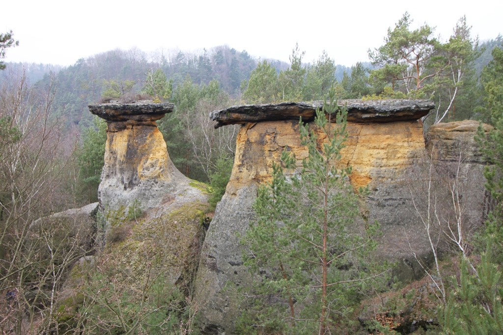 Třetí den patřil Kokořínsku. Ranní přejezd měl asi 80 kilometrů a trval hodinku. Na parkovišti pod hradem jsme byli mezi prvními. Cesta nahoru měří asi kilometr a zdoláte na ní asi 100 výškových metrů. Hrad Kokořín je krásně zachovalý. Prohlédli jsme si nádvoří, vylezli po 122 schodech na věž a vrátili se na parkoviště. Od hradu jsme popojeli k lesnímu parkovišti u Kokořínských pokliček. Tento zajímavý skalní útvar je od parkoviště vzdálen asi 300 metrů. K Pokličkám vedou schody, které vám pomohou překonat asi 50 výškových metrů. Od Pokliček se pak můžete vydat na okružní trasu po modré značce ke skalním útvarům Obří hlava a žába, kousek po zelené k Náckově rokli a zpět po modré k parkovišti (asi 5,5 kilometru). Na tuto trasu jsme bohužel neměli čas, takže jsme se od Pokliček vydali zpět k autu. V plánu jsme totiž měli ještě návštěvu skalních soch Čertovy hlavy u obce Želízy. Od Pokliček je to do Želíz asi 16 kilometrů. Už z parkoviště jsme uviděli velké pískovcové sochy, které jsou nyní po 100 letech opět vidět díky vykácení lesa, který je skrýval. Po prohlédnutí jsme vyrazili k domovu s myšlenkou, že příroda Kokořínska si v budoucnu zaslouží bližší prozkoumání.