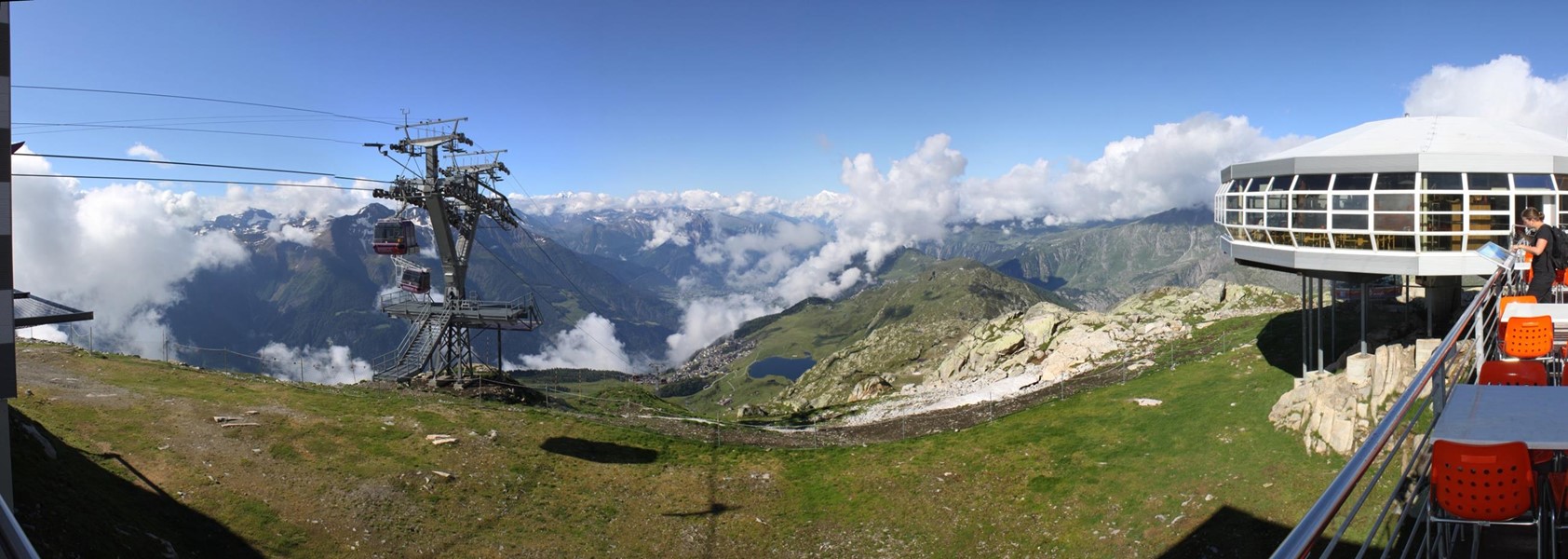Pondělí 9.7.2012 - Z kempu vyrážíme ve třičtvrtě na devět k dolní stanici lanovky Aguille du Midi. Zhruba v půl desáté kupujeme lístky a o hodinu déle vyrážíme vzhůru k Mont Blancu. Počasí nám přeje, je vymeteno a krásná viditelnost. Ve čtvrt na dvanáct jsme na místě - Aguille du Midi. Stanice lanovky je umístěna na tři strmé štíty mezi kterými se přechází po mostcích. Na prohlídku máme hodinu a čtvr, takže postupně procházíme jednotlivé vyhlídky a kocháme se pohledem na Mont Blanc a ostatní čtyřtisícovky mezi kterými je i Monte Rossa. Po vyfocení všech zajímavostí se pomalu suneme k odjezdu zpět do údolí. Na parkoviště se dostáváme asi ve čtvrt na dvě a po zaplacení vyrážíme směr Ženeva. Kemp nacházíme na první pokus, ubytováváme se a jedeme do městečka vybrat peníze a nakoupit. Při cestě zpět zajedeme do lesa na dříví, poté odpočíváme u stanu a grilujeme. V podvečer plánujeme zítřejší prohlídku Ženevy.