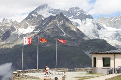 Neděle 8.7.2012 - Ráno nás probouzí déšť tak poleháváme. Kolem deváté vyrážíme na vlak, který jede do Zermattu. Autem se tam nesmí. Vlak jede zhruba dvacet minut a otevírá se před námi údolí vesničky Zermatt. Opět klasické horské městečko lišící se od jiných pouze jednou komerční ulicí, která je plná butiků a turistů. Procházíme město a míříme k lanovce na malý Matterhorn odkud by měl být krásný výhled na (velký) Matterhorn. Pod lanovkou se dozvídáme, že horní stanice je zavřená a kvůli velké oblačnosti bohužel Matterhorn není vidět. Zpáteční jízdenka stojí 99,- CHF což je asi dva tisíce korun na osobu. Tyto důvody vedli k tomu, že jsme šli raději k nádraží horského panorama-vlaku. Jízdenka nebyla sice z nejlevnějších, ale zážitek z vysoko stoupající úzkokolejky ji vynahradil. Po výstupu v předposlední stanici vláčku jsme se šli projít kolem stanice a vyfotili si krásná panoramata. Zpět jsme se vydali v půl jedné a cesta trvala 20 minut. Z výstupní stanice stačilo přejít hlavní třídu a byli jsme na nástupišti vlaku mířícího zpět do kempu v Täschi. Tam jsme dorazili zhruba v půl druhé. Po zbalení stanu a veškerých věcí jsme vyrazili před třetí hodinou směr Martigny a pak přes horský průsmyk do Francie - Chamonix. Do kempu Les Marmotes jsme přijeli kolem páté hodiny a s otevřenými ústy jsme obdivovali masiv Mont Blanc a ledovec z něj padající dolů na Chamonix. Po zakempení následovala sprcha, večeře, e-mailing a kontrola počasí na následující den. K naší radosti nepršelo a pršet ani nemá, na pondělí je hlášeno azůro tak se moc těšíme na lanovku a na výhled na Mont Blanc...