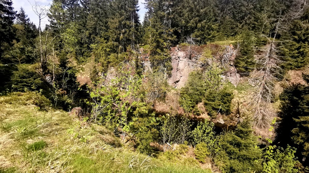 Jedná se v podstatě o povrchovou dobývku (pinku) po raně novověké důlní činnosti, kdy se zde dobývalo železo a hlavně cín. Tato pinka je největší svého druhu v Krušných horách a pravděpodobně i na světě. V lokalitě samozřejmě docházelo také k hlubinné těžbě, takže jámu tvoří částečně i propady starých vydobytých prostor (některé zdroje ji dokonce označují jako největší propadlinu po důlní činnosti u nás - což není pravda). Jáma se nachází v Krušných horách poblíž města Abertamy, je dlouhá 230 metrů, široká až 30 metrů a hluboká asi 20 metrů. V roce 2013 byla jáma vyhlášena kulturní památkou v rámci komplexu Cínový důl Hřebečná. Dnes je Červená jáma zajímavou zastávkou na Krušnohorské magistrále jak v zimě, tak i v létě. Na její oblíbenosti má jistě velký podíl netradiční lesní občerstvení, které nabízí denně domácí polévky, koláče, opečené klobásy, chlazené i horké, alko i nealko nápoje.