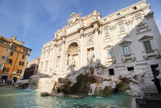 Fontána byla vybudovaná v letech 1732 až 1762 podle návrhu Nicoli Salviho. Fontána je napájena podzemním kanálem Aqua Virgo, který nechal vybudovat Marcus Vipsanius Agrippa v roce 19 př. n. l.. Fontána je vytesána z mramoru a uprostřed ní stojí na veliké mušli bůh moře Oceanus (Neptun), který je tažen mořskými koňmi. Na koních sedí dva tritoni, první z nich symbolizuje rozbouřené moře a druhý moře klidné. Se svou výškou 25,9 m a šířkou 19,8 m je největší fontánou v Římě.