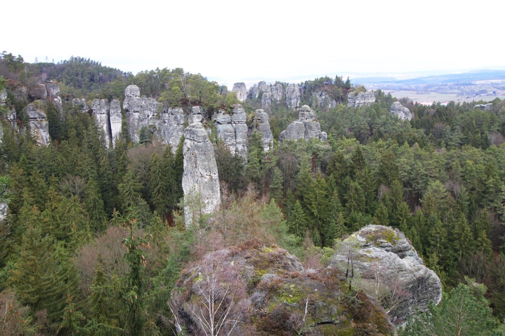 Skrz skalní město vede mnoho značených turistických tras, které můžete dle libosti kombinovat. Při naší návštěvě jsme začali na parkovišti u zámku Hrubá Skála. Odtud jsme se vydali Myší dírou pod hrad, dále jsme pokračovali k Adamovu loži, na Zámeckou vyhlídku, Mariánskou vyhlídku a kolem symbolického hřbitova horolezců dolů k pramenům (Antonínův, Barbořin, Mariin a Felixův). Pak jsme obešli Smíchousův rybník a mířili k Valdštejnu. Po prohlídce Valdštejnu jsme se vydali směrem k vyhlídce u Lvíčka a k vyhlídce na Kapelu. Další zastávkou bylo arboretum Bukovina a pak následoval návrat na parkoviště u zámku Hrubá Skála. Celý okruh měří 8,5 kilometru a dá se projít asi za tři hodinky. Mapu trasy neleznete zde.