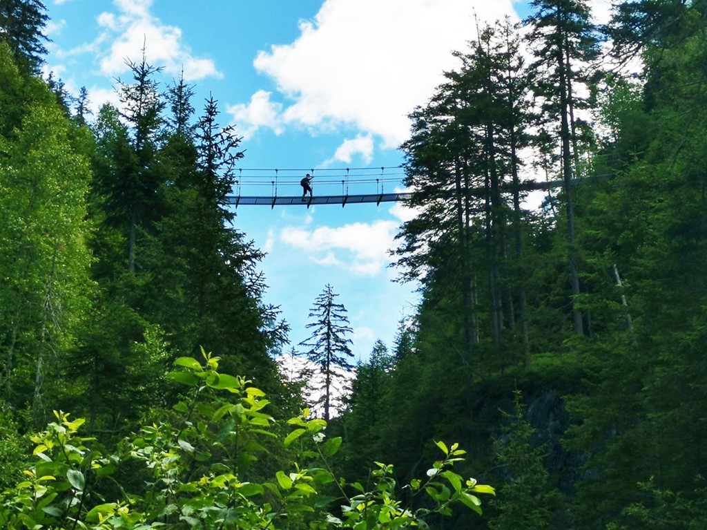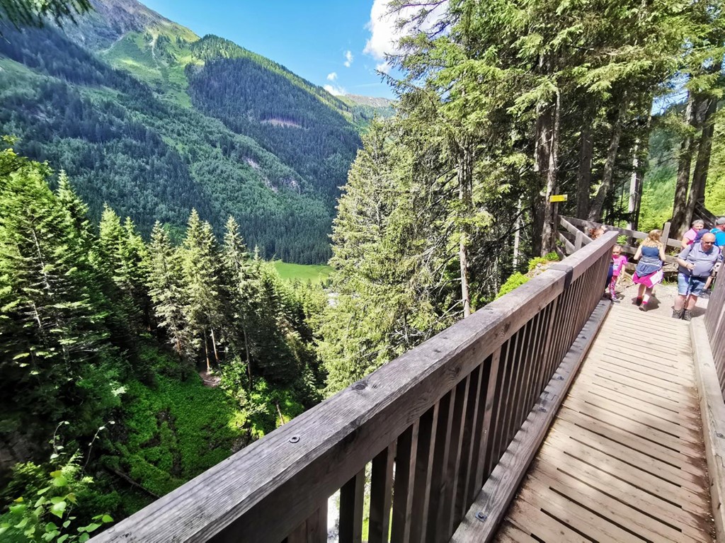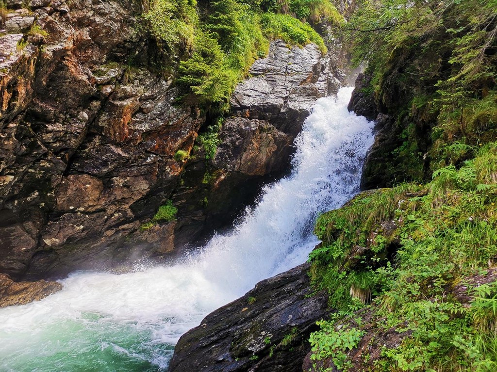 Trasa nese název „Wilde Wasser“ (divoká voda) a patří k nejznámějším přírodním trasám v regionu Schladming-Dachstein. Cestou se střídají dřevěné chodníky a vyhlídkové plošiny, z nichž se otevírají úchvatné pohledy na padající masu vody. Vrcholem trasy je impozantní visutý most, který přemosťuje soutěsku a nabízí pohledy, z nichž se tají dech. Kdo má chuť pokračovat dál, může vystoupat až k jezeru Riesachsee, které leží nad vodopády v nadmořské výšce přes 1 300 metrů. Ticho alpské přírody, šumění vody a vůně lesa zde vytvářejí atmosféru naprostého klidu. Celý okruh je vhodný i pro rodiny s dětmi, avšak doporučuje se pevná obuv a jistá dávka odvahy – některé úseky vedou těsně nad srázy. Na začátku trasy se nachází parkoviště i útulná horská restaurace, kde si lze po túře odpočinout.