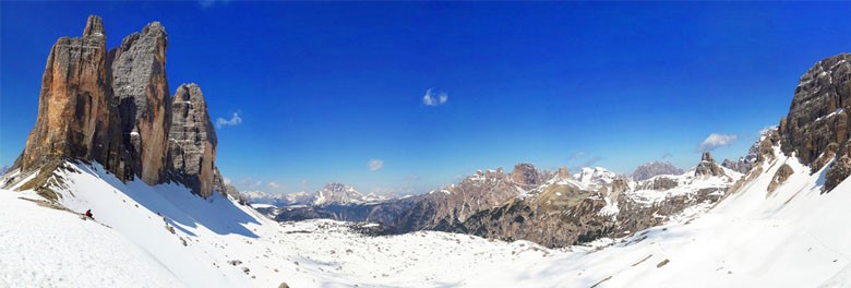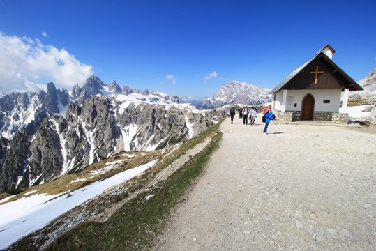 Tre Cime / Drei Zinnen se nachází v nadmořské výšce kolem 2.300 metrů nad mořem a kolem těchto "tří zubů" vede krásná turistická stezka. Nejvyšší zub se vypíná až do výšky 2.999 m.n.m, západní do výšky 2.973 m.n.m. a malý do výšky 2.875 m.n.m. a společně vytvářejí impozantní panorama. Ke třem zubům se dostanete nádhernou horskou silnicí vedoucí z Misuriny k chatě Auronzo. Silnice je sice zpoplatněna, ale rozhodně si ji kvůli tomu nenechte ujít. Od chaty Auronzo se pak můžete vydat okružní turistickou trasou přes chatu Lavaredo, Dreizinnen hut a Col Forcellina zpět k parkovišti u chaty Auronzo. Celá trasa měří 12km a zvládnete ji zhruba do 5ti hodin (mapa).